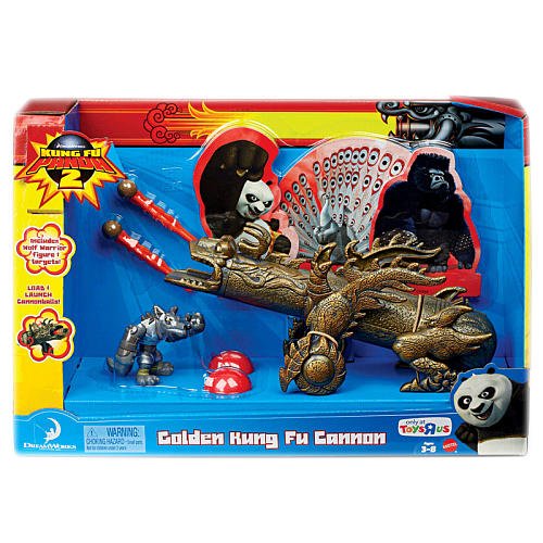 This Exclusive FisherPrice Kung Fu Panda Golden Cannon with Wolf is an action packed cannon launcher! Load up the balls and aim at the targets. Press down on the cannon to fire! Includes cannon, 3 balls, 3 targets and an exclusive Wolf figure.